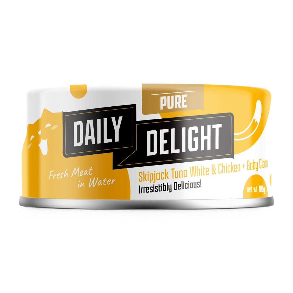 Daily Delight Pure Skipjack Tuna White & Chicken with Baby Clam Canned Cat Food, 80g