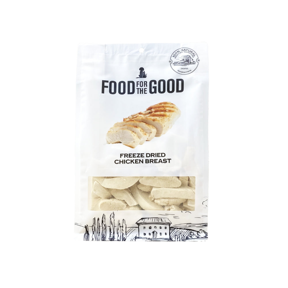Food For The Good Freeze Dried Chicken Breast is an excellent source of protein, suitable for both dogs and cats. Made from 100% Chicken Breast, the treats are gently Freeze Dried to retain all the nutrients and flavor your pet craves! These treats are grain-free, gluten-free, without any added preservatives and antibiotics.