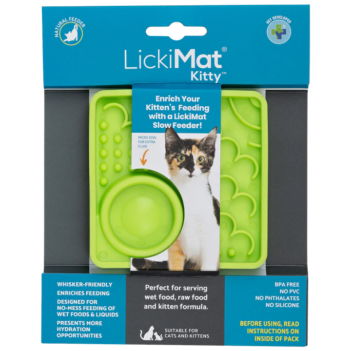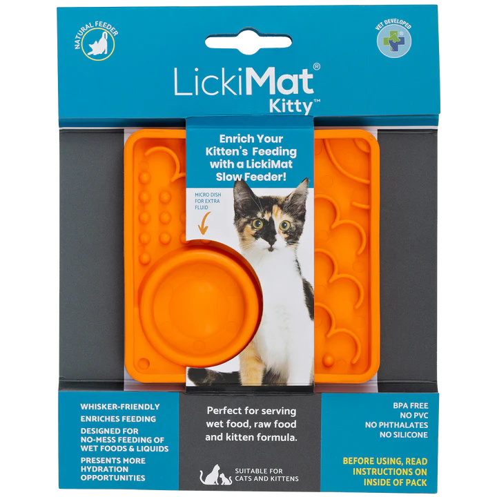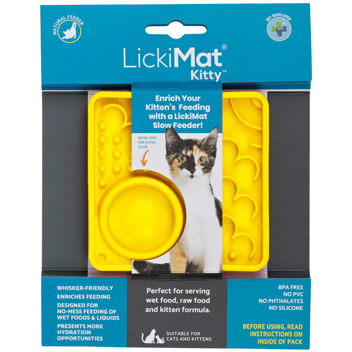 LickiMat is a perfect replacement for all cat bowls and there are a wide variety of designs and colours to suit your preferences. You can serve raw, wet, dry and liquid food at the same time without making a mess. Different sections and igh sides allow gravy and other foods to be served without a mess.
