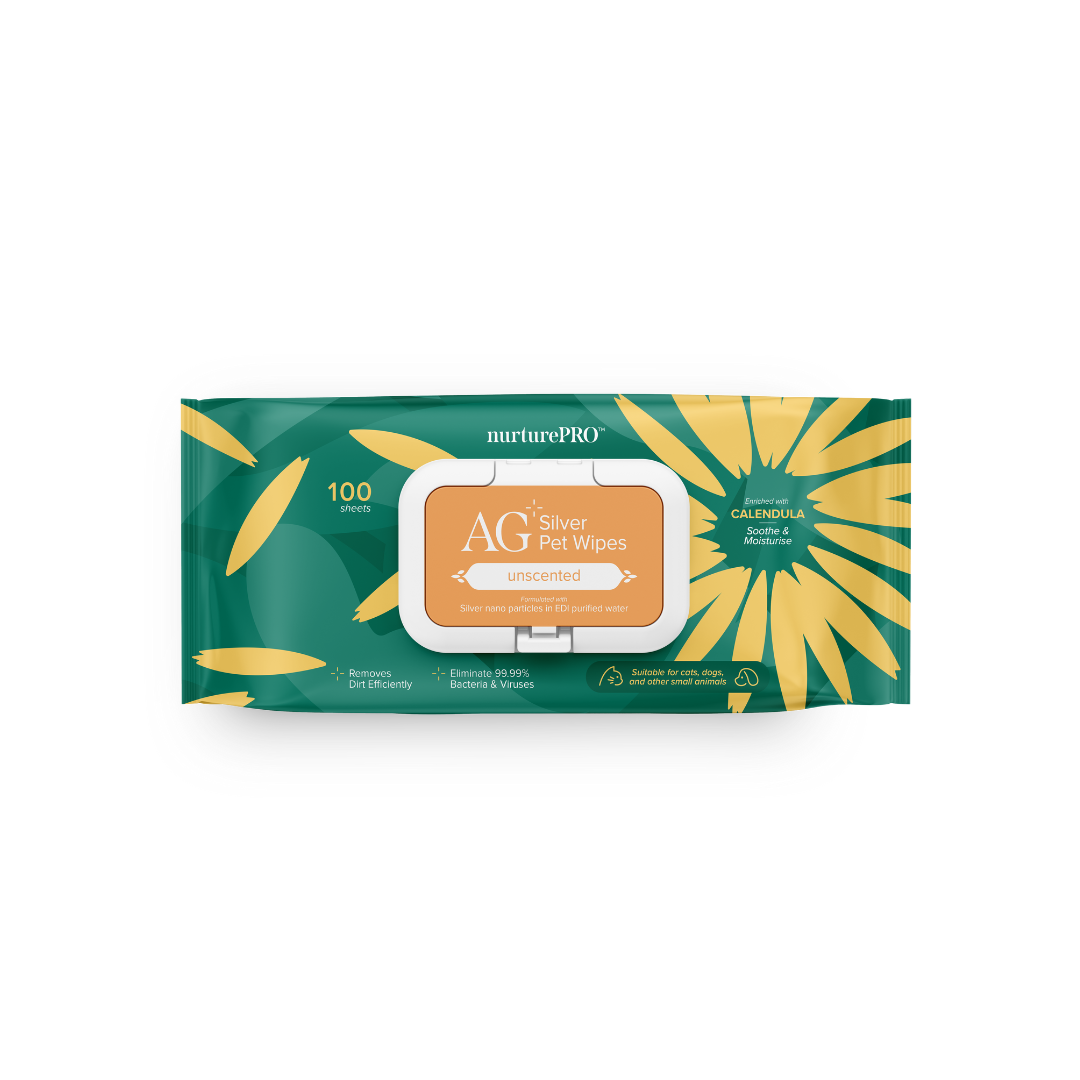 Nurture Pro AG Silver Pet Wipes - Unscented, 100 Sheets