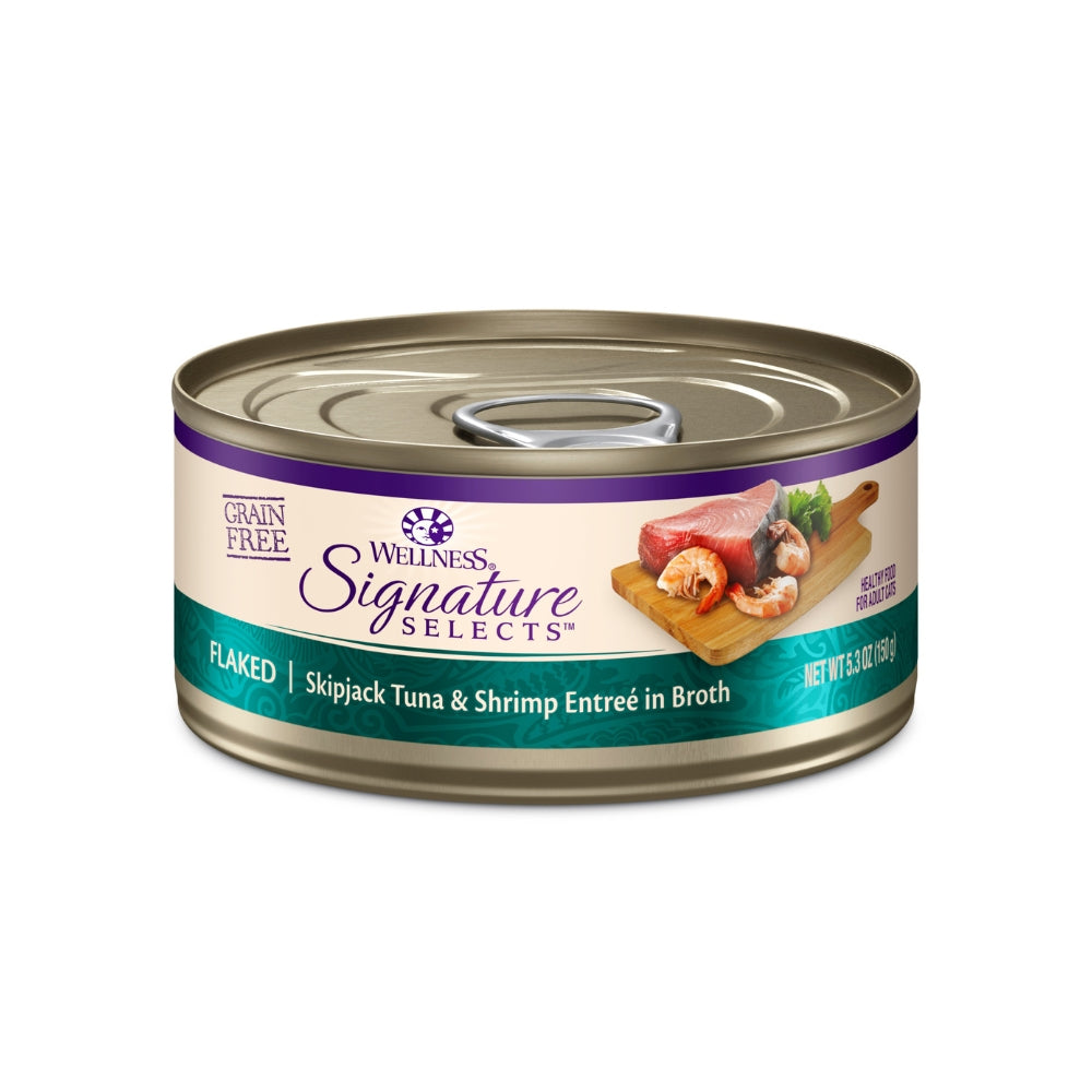 Wellness CORE Signature Selects Flaked Skipjack Tuna with Shrimp Entree in Broth Canned Cat Food, 5.3 oz
