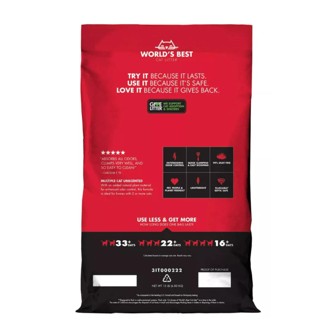 World’s Best Cat Litter Corn Kernel Clumping Cat Litter – Multiple Cat