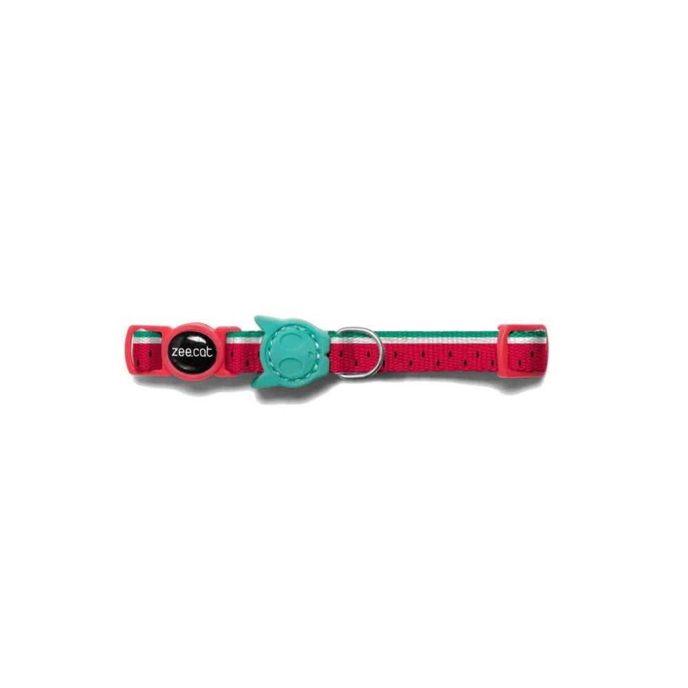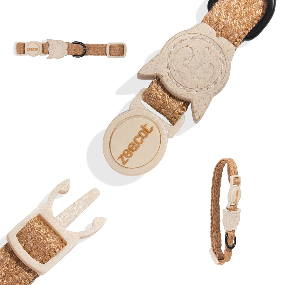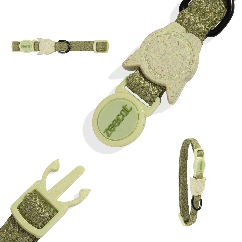Our Zee.Cat collars are made of super soft polyester and are one size fits all. The buckle is a breakaway buckle that automatically opens if your cat gets stuck.